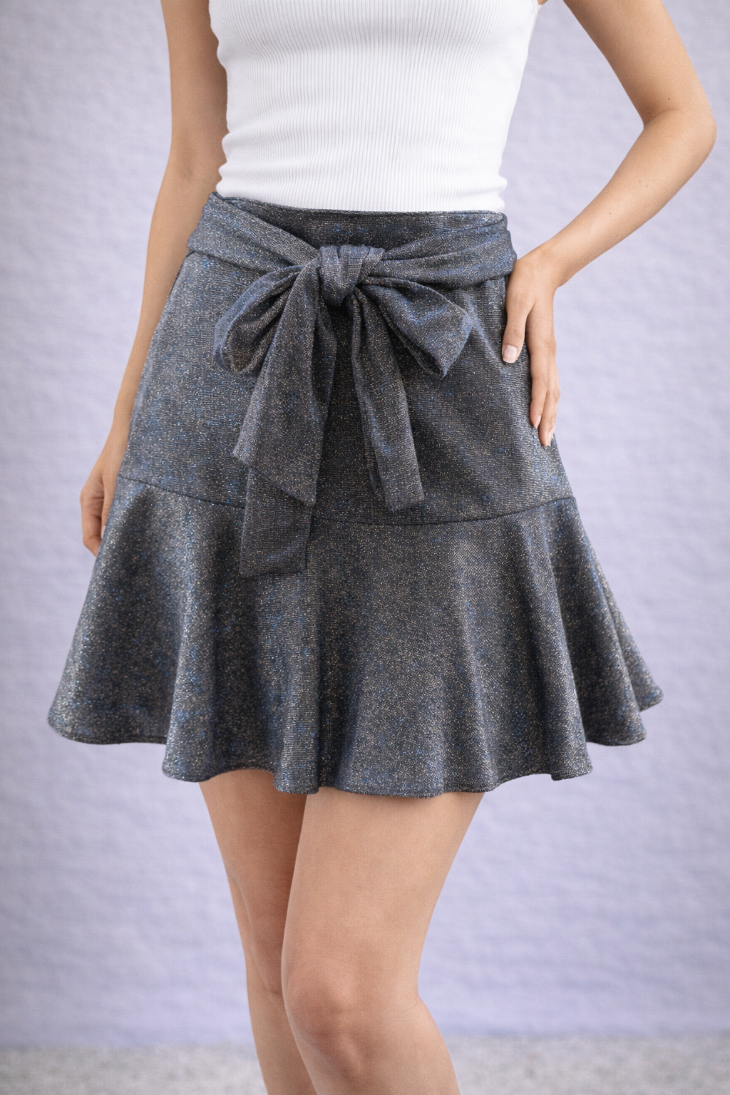 Дамска лъскава пола с панделка