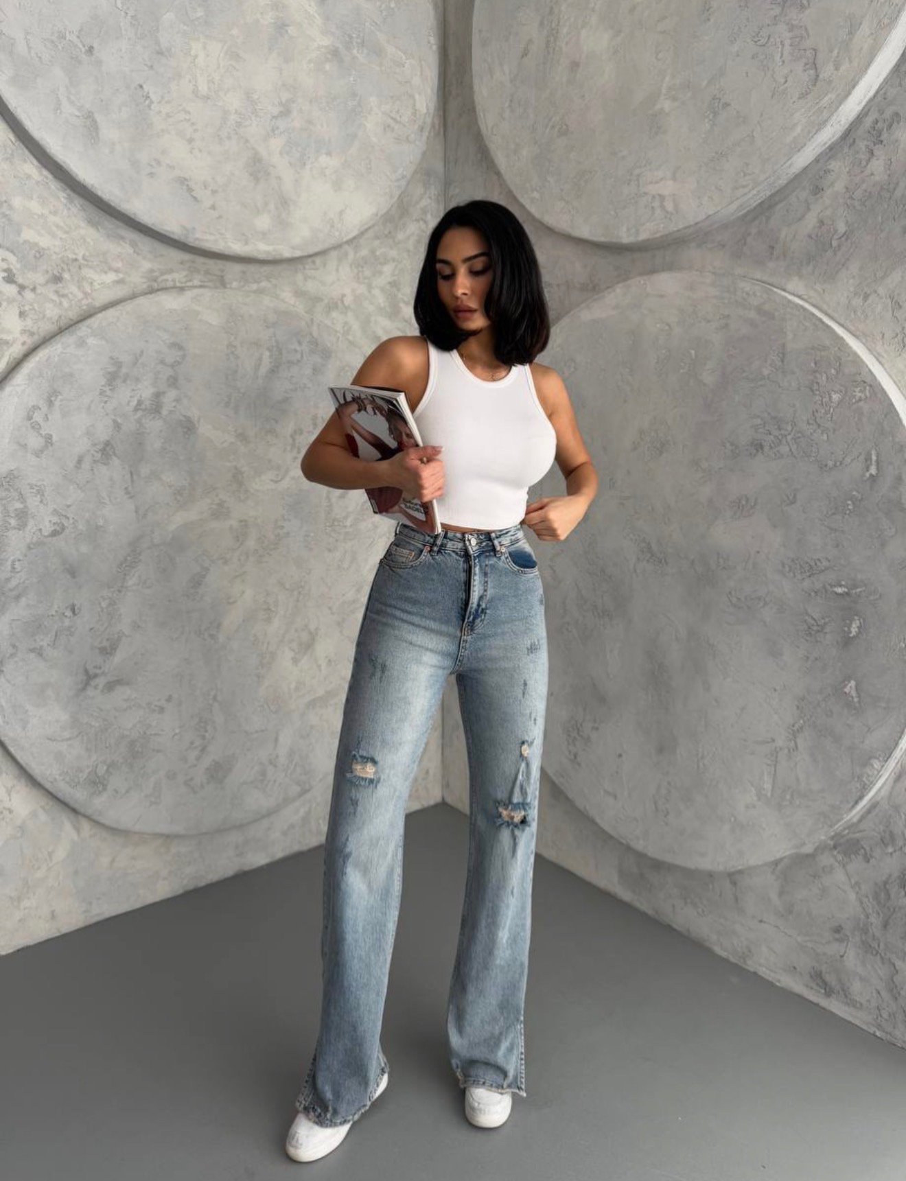 Дамски дънки със скъсан ефект