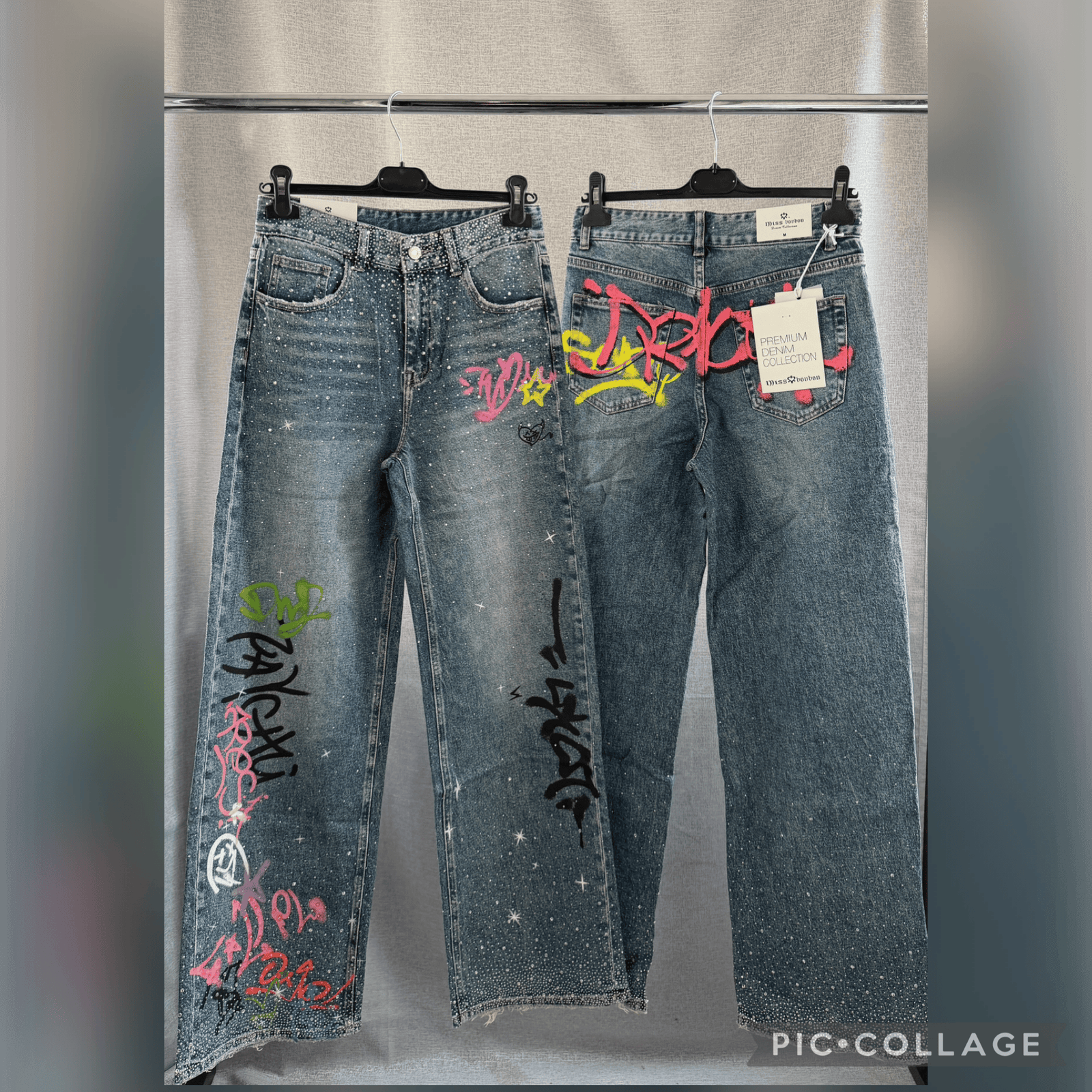 Бъдете първият написал отзив за “Дамски дънки с шарен ефект и камъчета”